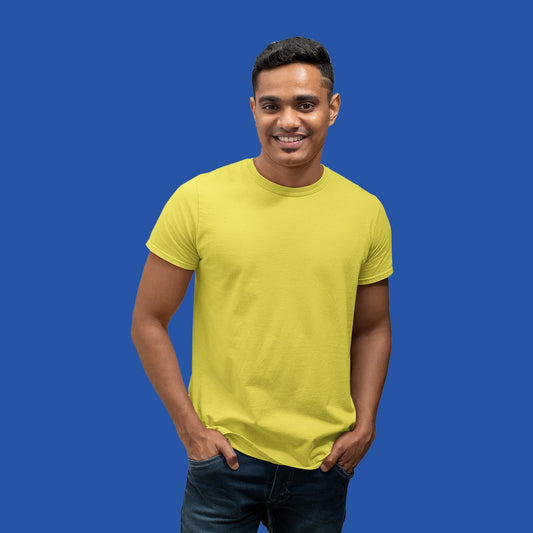 Men's Round Neck Plain T-Shirt- NEW YELLOW