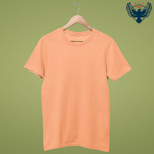 Men's Round Neck Plain T-Shirt- SUNSET ORANGE