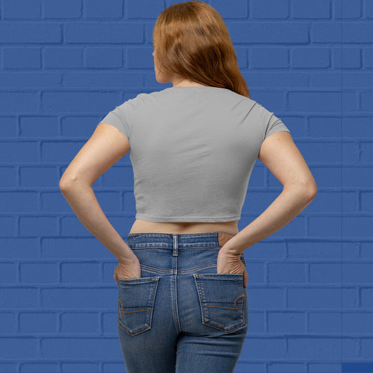 Plain Grey Melange Pink Crop Top