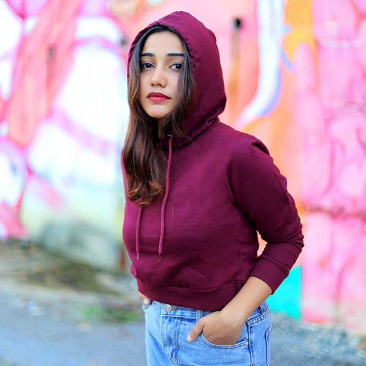 Plain Maroon Crop Hoodie
